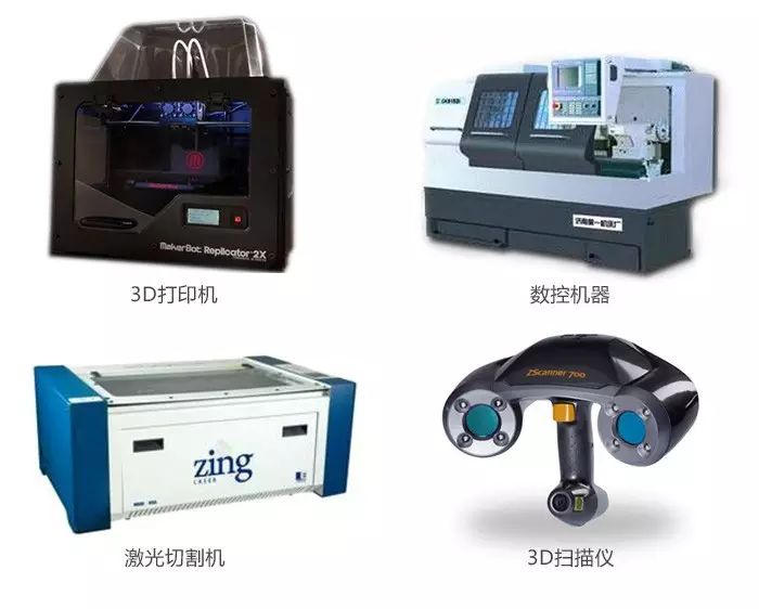 <1>3D打印机 3D打印机就是在传统打印机上增加了一维,打印介质由碳粉、墨盒换成了熔融塑料,当然也可以是玻璃、钢、铜、金、钛,甚至是蛋糕霜,你可以用它打出一个精美的蛋糕。 ·3D打印机可以使用活体细胞打印出人体器官来。——这不是科幻——我国杭州电子科大生物工程的徐铭恩教授就研发出了国内首台生物3D打印机。 ·3D打印能够打出护齿、假肢,甚至是金属钛的整块下颌骨。 ·3D在巨型应用上,能够打出混凝土材质的多层楼房。 3D打印的优势是满足个性化,快速,本地制造,很少浪费原材料;它的劣势是缺乏规模效应,单个打印的成本与大量制造的成本相差不大。 <2>数控机器 高端一点的工厂里都有数控机床,3D打印机用的是加法,数控机器用的是减法,通过钻头在金属板、塑料、木头等材质上切割出想要的形状,小到刺绣机、刻字机,大到库房大小的数控机床,可以切割飞机机身。 <3>激光切割机 激光切割机就是使用强力激光在塑料、木材和薄金属板等材质上精准地切割出任意复杂程度的形状。很多CAD软件都可以将三维物体分解为二维部件,使用激光切割后,然后像拼插玩具那样插接起来。 <4>3D扫描仪 3D扫描仪能够进行“现实捕捉”,这样不必费力地建立3D模型,只要放在3D扫描仪前就可以了。比如你可以用3D扫描仪扫一下你自己的脑袋,把自己的脸部三维形象夸张变形,然后用3D打印机打印出你自己形象的摇头玩偶。